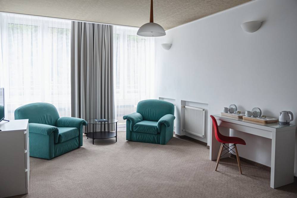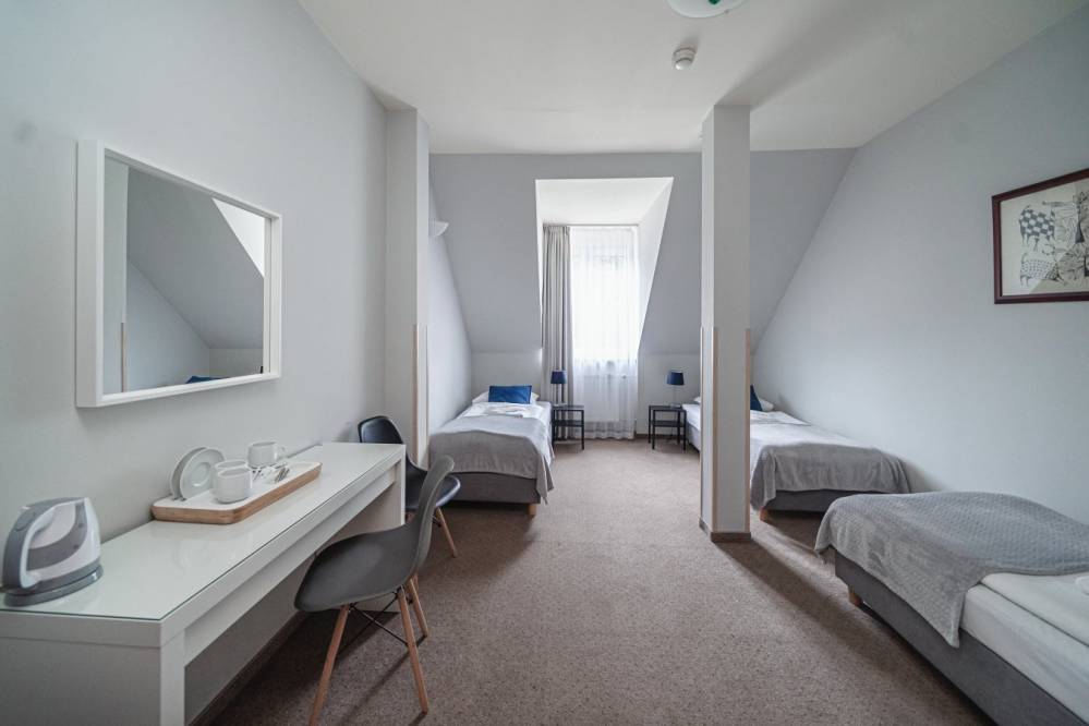 Pokoje wyposażone są w wygodne łóżka, łazienki z wanną lub prysznicem, TV, WIFI.