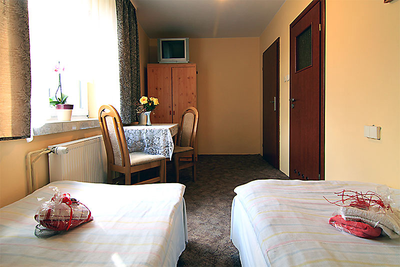 Przytulne pokoje 2, 3, i 4-osobowe z łazienkami. W każdym telewizor, radio i bezprzewodowy internet.