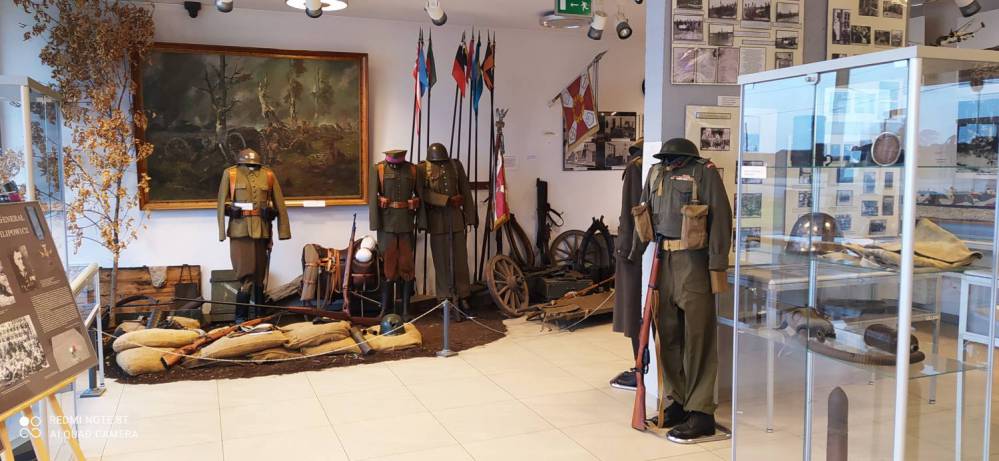 Mokra, budynek Muzeum Kultury Przeworskiej i Izba Pamięci Bitwy pod Mokrą i fragment ekspozycji, foto MKPiIPBpM