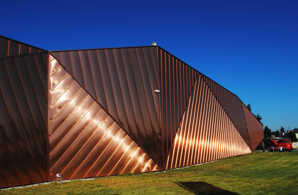 Żory, fregment miedzianej elewacji Muzeum Ognia, foto Edward Wieczorek