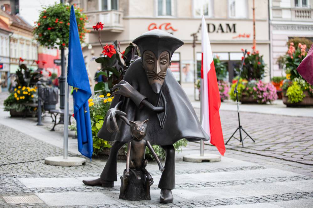 Smok, kucharz i Don Pedro ustawieni są na pl. Wojska Polskiego, czyli Starym Rynku miasta Białej, do którego doprowadza nas ulica 11 Listopada.