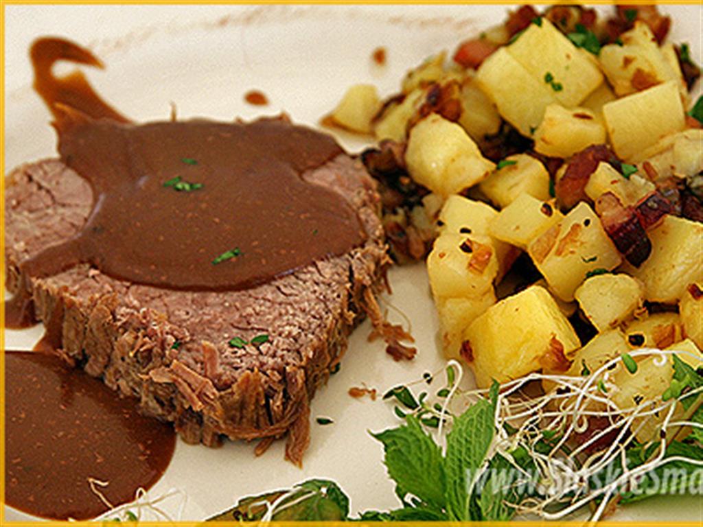 Mięso oczyścić, włożyć do głębokiego naczynia i zalać marynatą tak, żeby było całkowicie przykryte. Pozostawić w chłodnym miejscu na dwa-trzy dni odwracając kilka razy.