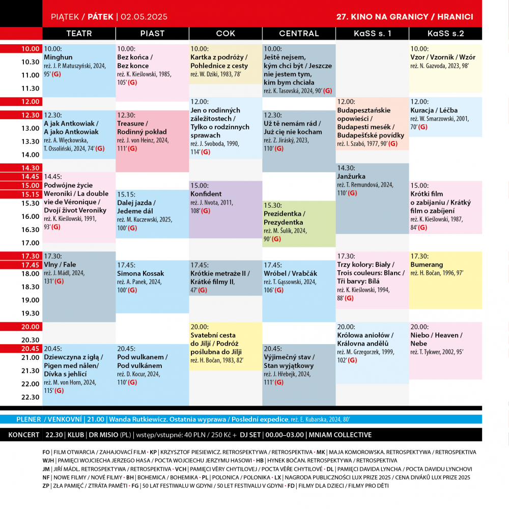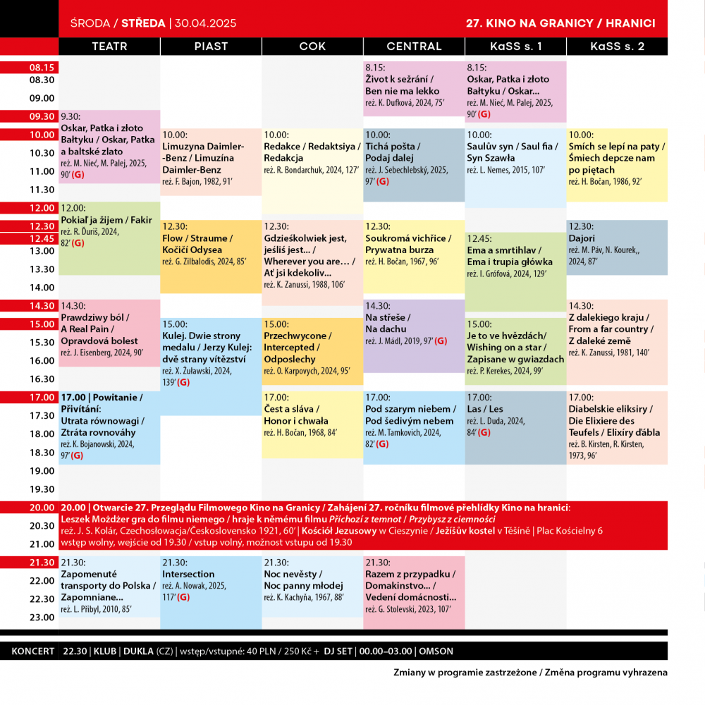 27. Przegląd Filmowy Kino na Granicy odbędzie się w dniach 30 kwietnia - 4 maja 2025 roku w Cieszynie i Czeskim Cieszynie.