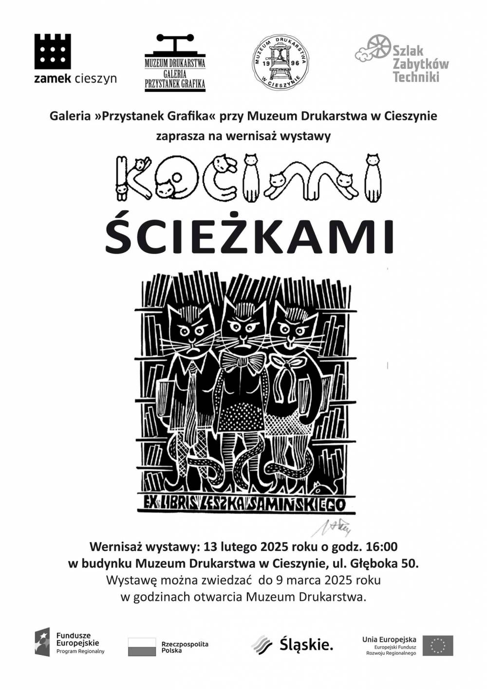 Muzeum Drukarstwa w Cieszynie zaprasza na wystawę "Kocimi ścieżkami". Wernisaż wystawy odbędzie się 13 lutego o 16:00 w budynku Muzeum. Wystawę zwiedzać będzie można do 9 marca 2025r w godzinach otwarcia Muzeum Drukarstwa.