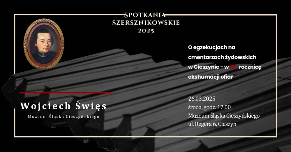 Muzeum Śląska Cieszyńskiego serdecznie zaprasza 26 marca 2025r. na Spotkanie Szersznikowskie zatytułowane "O egzekucjach na cmentarzach żydowskich w Cieszynie - w 80. rocznicę ekshumacji ofiar".