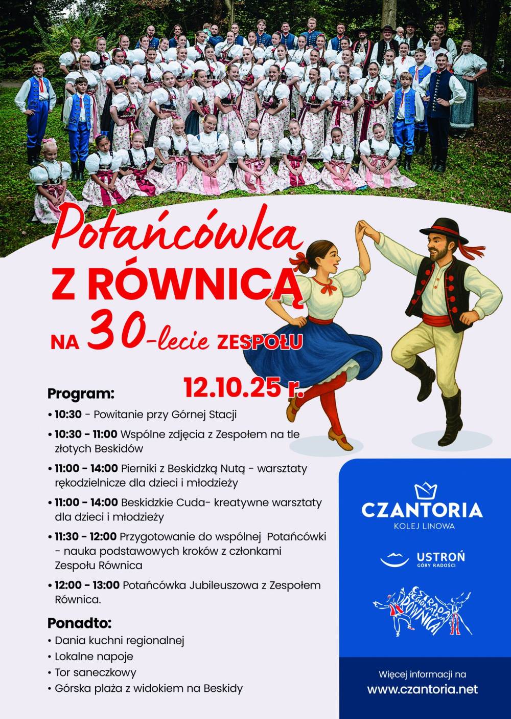 Razem z zespołem Estrada Regionalna "Równica" Im. Renaty Ciszewskiej, który świętuje swoje 30-lecie, zapraszamy na pełną radości i folkloru Potańcówkę z Równicą.