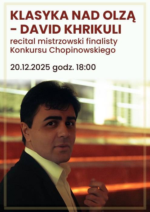 Finalista tegorocznego Międzynarodowego Konkursu Pianistycznego im. Fryderyka Chopina, David Khrikuli, który skradł serca publiczności w całej Polsce wystąpi podczas najbliższej odsłony Klasyki nad Olzą już 20 grudnia o godz. 18:00 na scenie Teatru im. Adama Mickiewicza w Cieszynie.