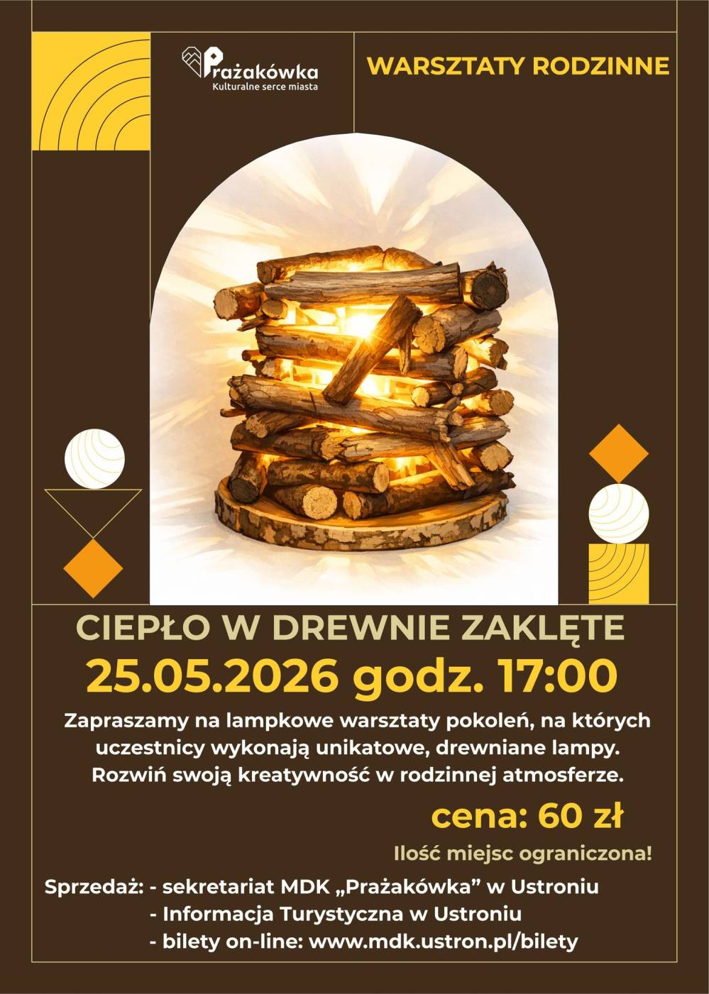 Kup bilety on-line: https://kupbilet.mdk.ustron.pl/index.php/kup-bilet/cieplo-w-drewnie-zaklete-warsztaty-2026-05-25-17-00