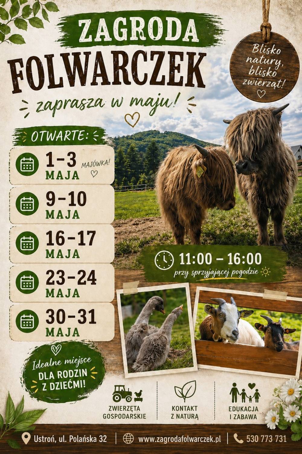 Maj to idealny moment, żeby odwiedzić Zagrodę Folwarczek i spędzić czas blisko natury.