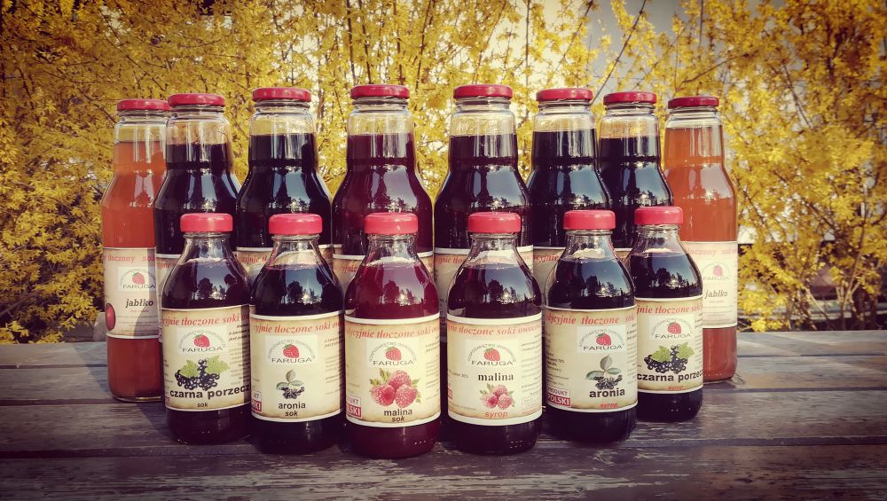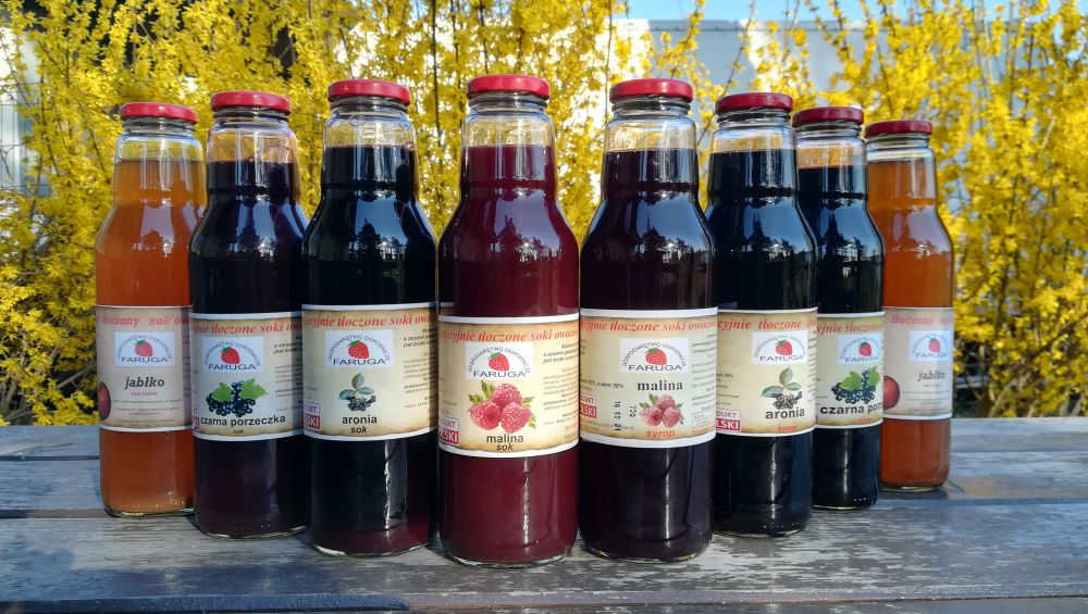Pyszne i zdrowe soki wyciskane tradycyjną metodą na tłoczni z użyciem przekładek z drewna akacjowego. Nie zawierają one żadnych dodatków oraz są pasteryzowane w temperaturze 78 stopni Celsjusza. Dzięki temu ze świeżych owoców i warzyw powstają najwyższej jakości soki: jabłkowe, malinowe, aroniowe, porzeczkowe, z owoców czarnego bzu oraz mieszane jabłkowo-aroniowe, jabłkowo-malinowe, jabłkowo-porzeczkowe, jabłkowo-marchewkowe, jabłkowo-buraczane. Sięgnijmy po solidną dawkę witamin!