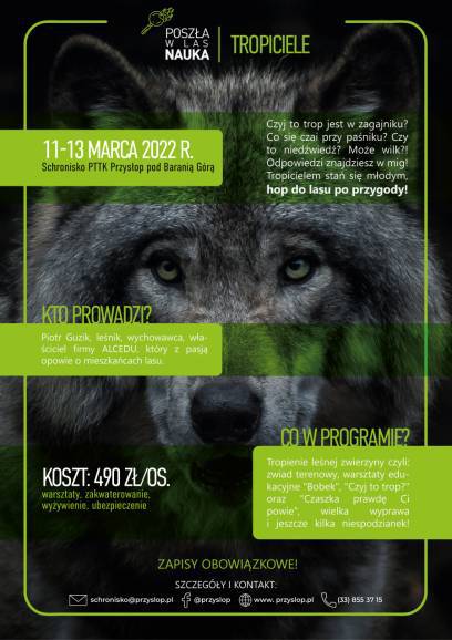 Zapraszamy uczestników od 7 roku życia na warsztaty tropienia leśnych zwierząt! Poznamy różnorakie tropy: odciski, odchody, kości. Nauczymy się rozpoznawać do kogo należą i jak za nimi podążać, by odkryć niejedną tajemnicę serca lasu…