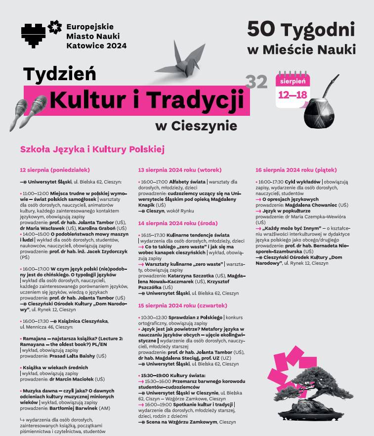 Jest to impreza otwarta, na której uczestnicy Szkoły Języka i Kultury Polskiej w Cieszynie zaprezentują swoje Kraje, języki, zwyczaje i tradycje.