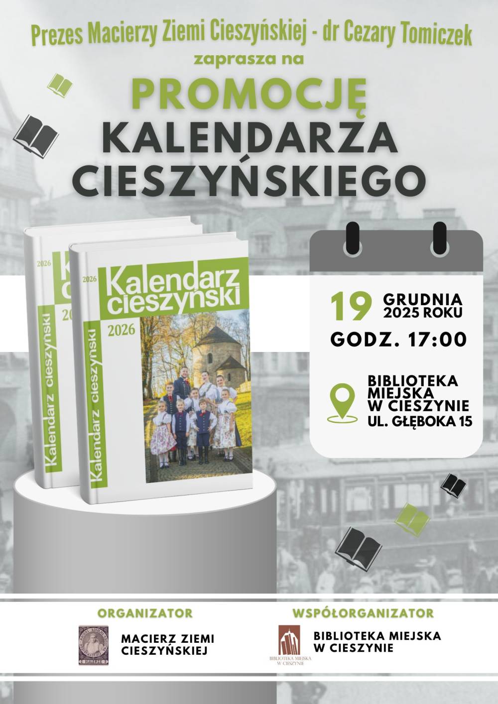 Zapraszamy na promocję Kalendarza Cieszyńskiego 2026, która odbędzie się 19 grudnia 2025 r. w Bibliotece Miejskiej w Cieszynie.