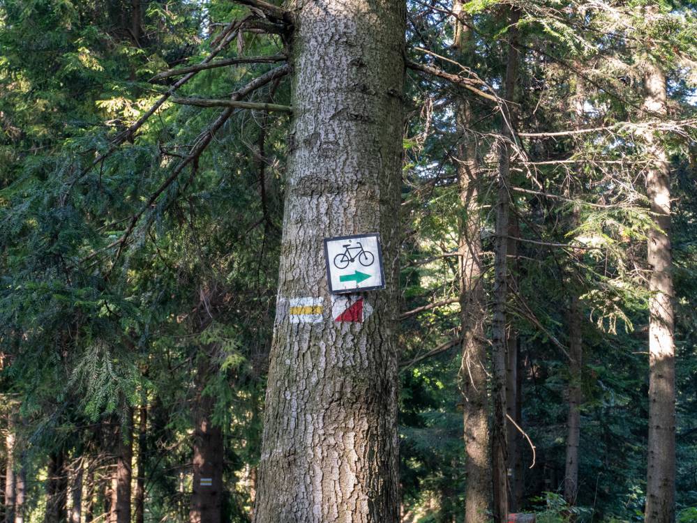 Niestety jest tylko jedno miejsce odpoczynkowe i to kawałek za pierwszym kilometrem szlaku. Brakuje takich miejsc w dalszej części, gdzie po trudnych podjazdach rowerzysta mógłby nieco się zregenerować i nacieszyć widokami.
