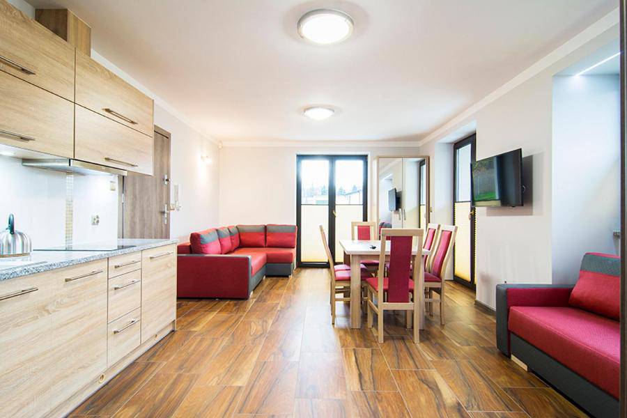 Na miejscu znajduje się telewizor z płaskim ekranem oraz prywatna łazienka z prysznicem. Kuchnię wyposażono w lodówkę oraz zmywarkę.