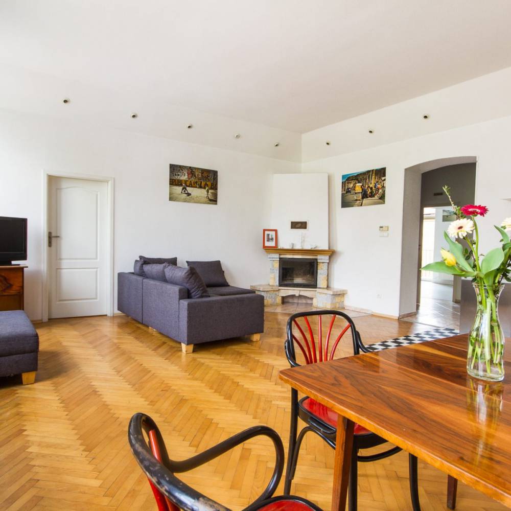 Mieszkanie znajduje się na pierwszym piętrze zabytkowej kamienicy. W jego skład wchodzą dwie sypialnie, łazienka, oraz duży salon z pełni wyposażonym aneksem kuchennym i balkon, telewizor (netflix) dostępny w salonie. Goście mają również bezpłatny dostęp do wi-fi.