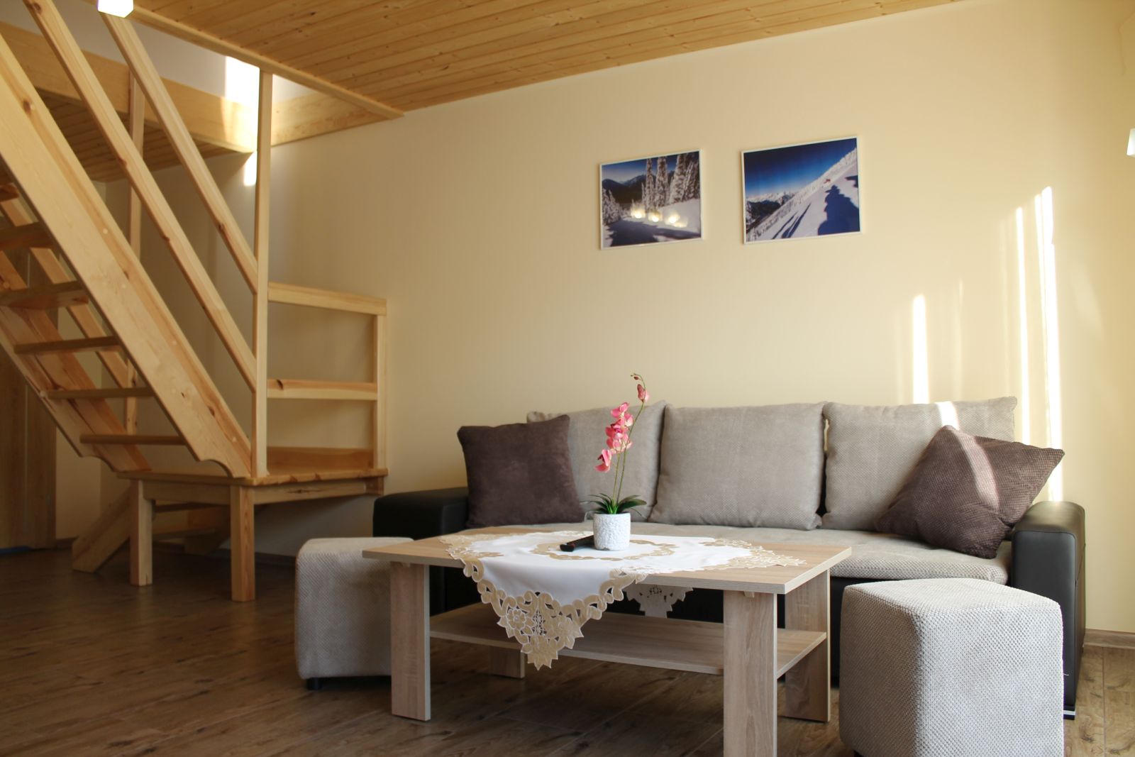 Obiekt oferujący przytulne apartamenty oraz pokoje 2 i 3 osobowe niedaleko kolejki linowej na Skrzyczne.