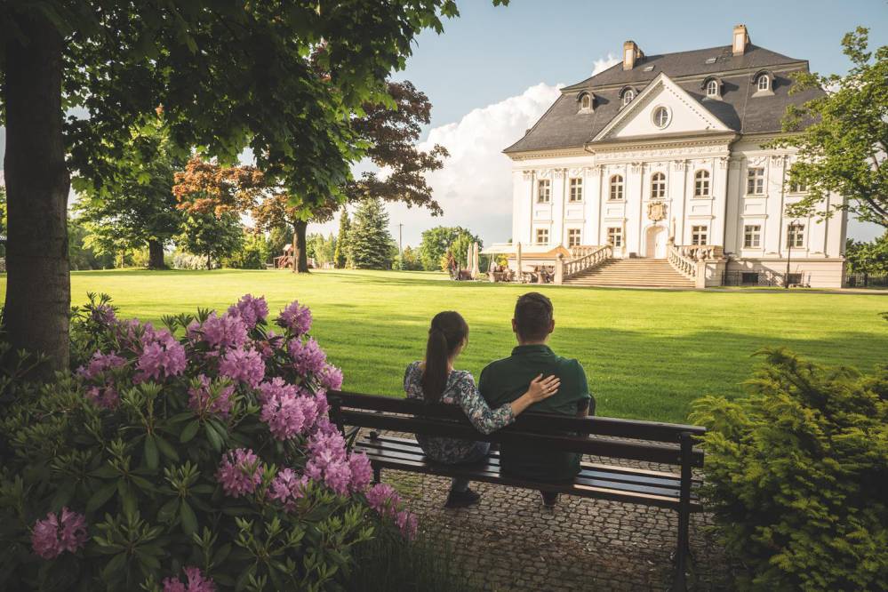Ten sielankowy, doskonały na rowerowe wycieczki, pofałdowany rejon to niezwykle interesujące kontrasty krajobrazowe pejzaży wiejskich, przemysłowych i przyrodniczych. Pałac otoczony jest pięknym parkiem, z kolorowym kwieciem. Znajduje się dziś tam restauracja, kawiarnia i pokoje hotelowe. Będzie doskonałym uzupełnieniem lub zachętą do odkrycia wypoczynkowego ale też niezwykle fotogenicznego serca Jastrzębia-Zdroju czyli jego Parku Zdrojowego.