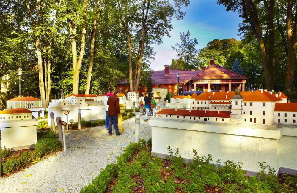 Parkujemy SAM i BUS na parkingu przy ul. Witosa lub na parkingu przy ul. Grojec, obok amfiteatru. Wędrujemy żółtym szlakiem. Wchodzimy do Parku Zamkowego i po 350 m zobaczymy tablicę z mapą parku, przy niej skręcamy w lewo do MINI ZOO. Zwiedzanie bez opłat. Wracamy do żółtego szlaku i skręcamy w lewo. Po ok. 350 m skręcamy w wyraźną ścieżkę w lewo i idziemy do OGRODU RÓŻANEGO, obok fontanna. Koniecznie należy przejść przez urokliwą pergolę. Tuż za pergolą idziemy przez mostek do położonego na wyspie DOMKU CHIŃSKIEGO z XIX w. Wychodzimy z wyspy po przeciwległym mostku i idziemy w kierunku widocznego pałacu. Po prawej stronie ŁAWECZKA ALICJI HABSBURG, a naprzeciw PARK MINIATUR ZIEMI ŻYWIECKIEJ.