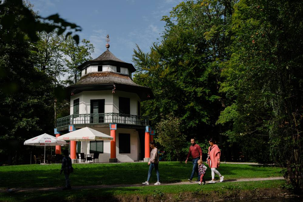 Pierwszy żywiecki park powstał w miejscu naturalnego lasu i jest niemym świadkiem historii regionu. Obecny kształt park zawdzięcza ostatnim właścicielom, rodzinie Habsburgów. W parku znajdują się urokliwe alejki oraz Mini ZOO „Stajnia Miejska. Na skraju parku i w sąsiedztwie zamku znajduje się postawiony przełomem XIX i XX wieku pałac. Budynek nie jest udostępniony do normalnego zwiedzania, lecz wspaniale uzupełnia krajobraz parku.