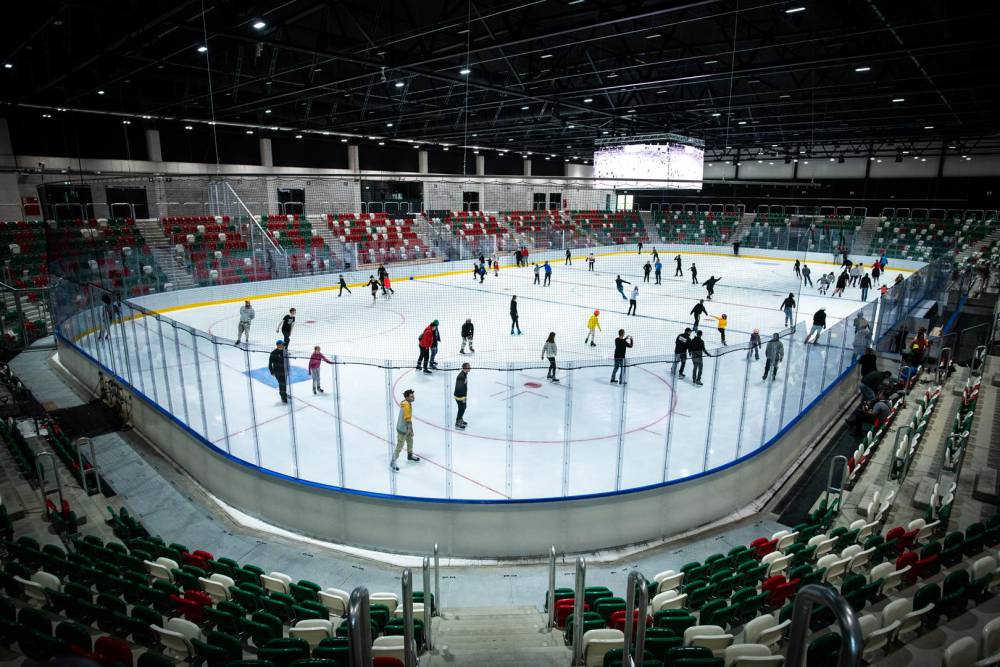Lodowisko sezonowe o wymiarach 60 x 28 m, bez zadaszenia, jest oświetlone i nadaje się do gry w hokeja.