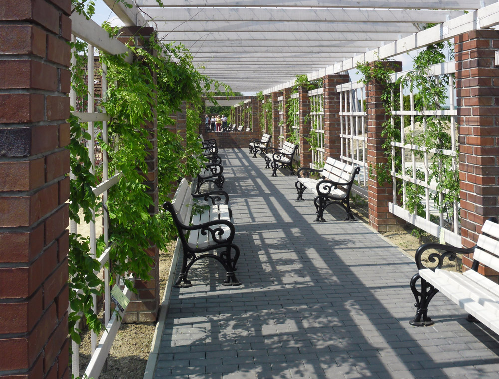 Poza odmianami róż wielokwiatowych (rabatowych), w rosarium trafimy na róże pienne (sztamowe), czepne (pnące) obrastające altany i pergole oraz róże miniaturowe.