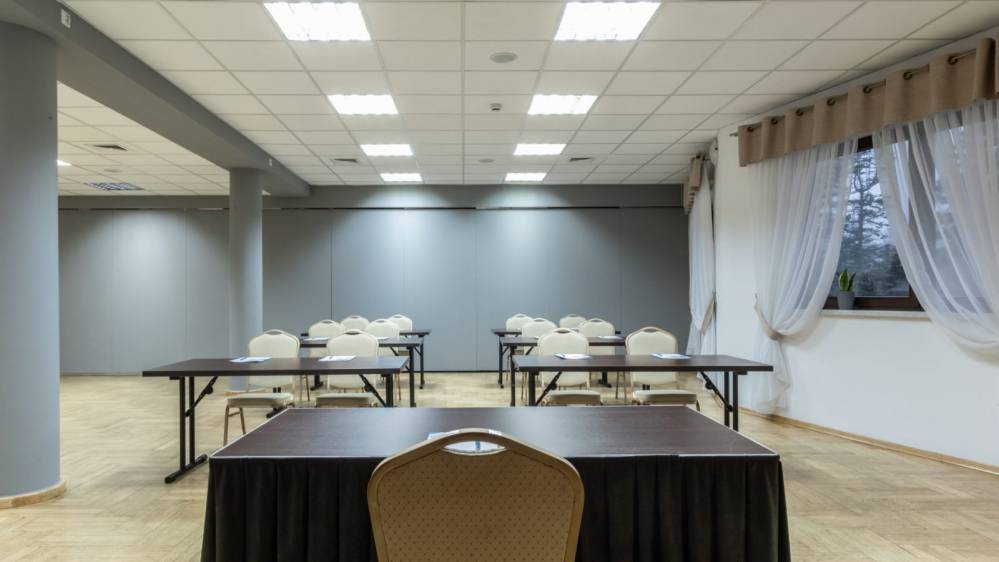 Hotel Vestina położony w Wiśle-Malince oddaje do dyspozycji dużą 200-metrową salę. Sala posiada przesuwne ściany mobilne, w razie konieczności można ją wydzielić na dwie mniejsze przestrzenie pod szkolenia. Sala znajduje się tuż obok restauracji, w której serwujemy słodką przerwę kawową. Posiadamy profesjonalne nagłośnienie, ekran pod rzutnik oraz flipchart – wszystkie niezbędne rzeczy potrzebne do organizacji szkolenia. Salę możemy przygotować wedle wytycznych: w układzie teatralnym, szkolnym, kameralnym lub w kształcie litery U.