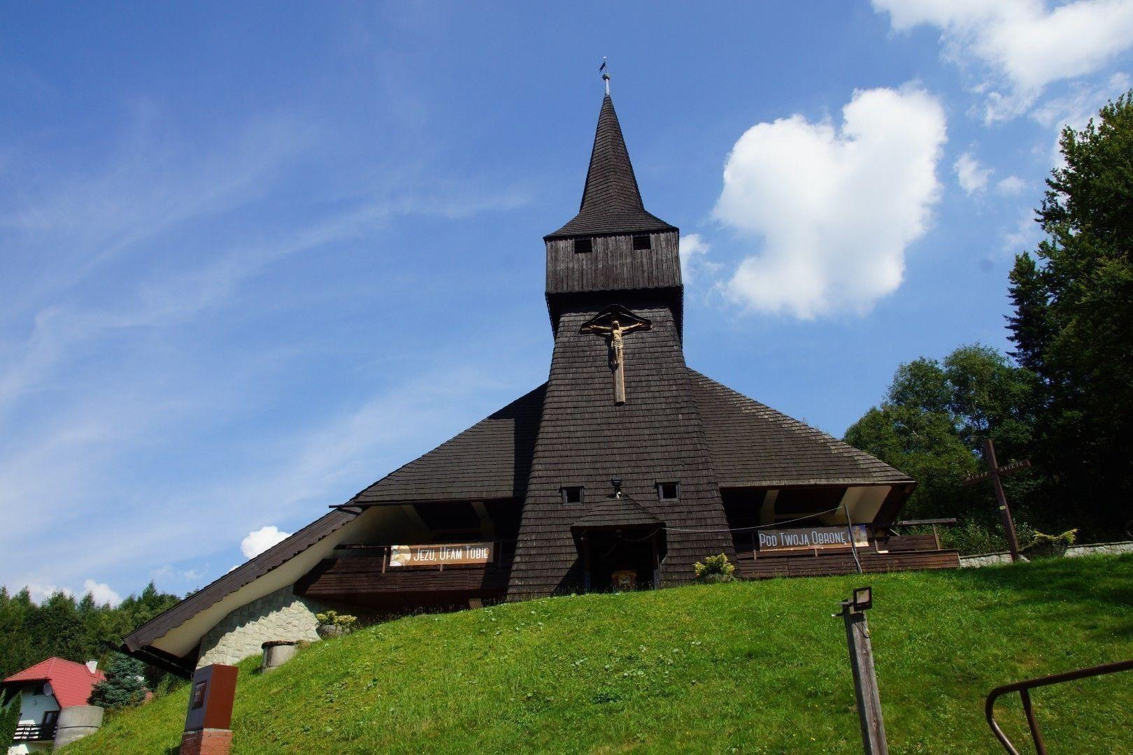 Obiekt ten wzniesiono w latach 1981-1983. Wieża zabytkowa z XVI wieku o wymiarach 8.75 x 8.40 m i wysokości 30.5 m, pochodzi z kościoła w Połomii koło Jastrzębia Zdroju, wzniesionego tam w 1575 r. Przeniesiona została na nowe miejsce tj. stok góry Kozienic w Wiśle Głębcach i zrekonstruowana w 1981 r. Przylega do niej kościół o konstrukcji żelbetowej, zbudowany według projektu architektów p. inż. Piotra Wzorka i p. inż. Marka Cempli. Konstrukcję opracował p. inż. Kazimierz Binek. Kościół ten został poświęcony 12 czerwca 1983 r. Od 16 kwietnia 1984 r. jest siedzibą parafii pod wezwaniem Znalezienia Krzyża Św