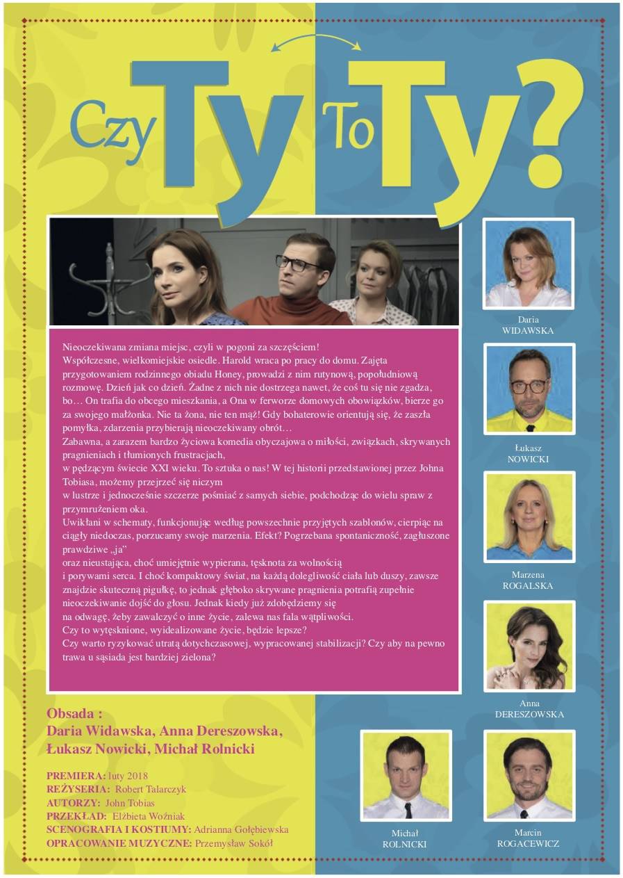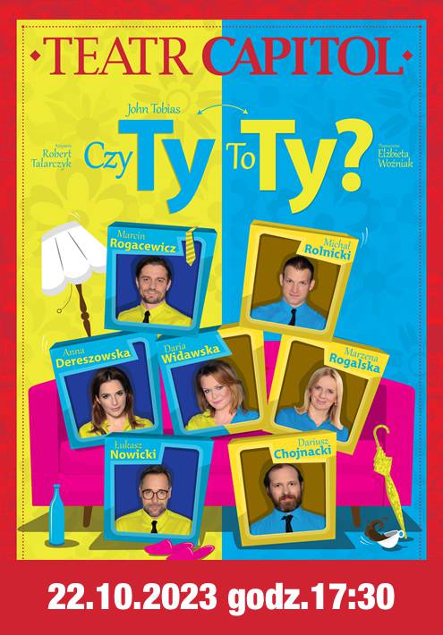Zapraszamy 22 października 2023 r. , godz. 17:30 do Teatru im. Adama Mickiewicza w Cieszynie na spektakl Teatru Capitol: "CZY TY TO TY".