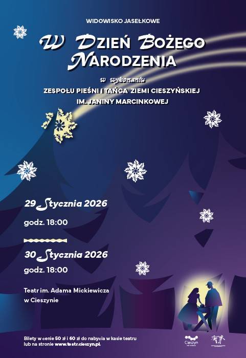 Zapraszamy do Teatru im. Adama Mickiewicza w Cieszynie na wyjątkowe wydarzenie: Widowisko Jasełkowe „W dzień Bożego Narodzenia” w wykonaniu Zespołu Pieśni i Tańca Ziemi Cieszyńskiej im. Janiny Marcinkowej