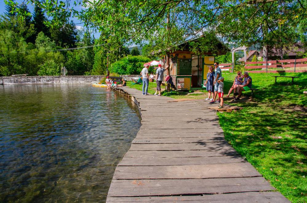 Zapora na potoku utworzyła tu niewielki zalew, który stał się miejscem rekreacji.
