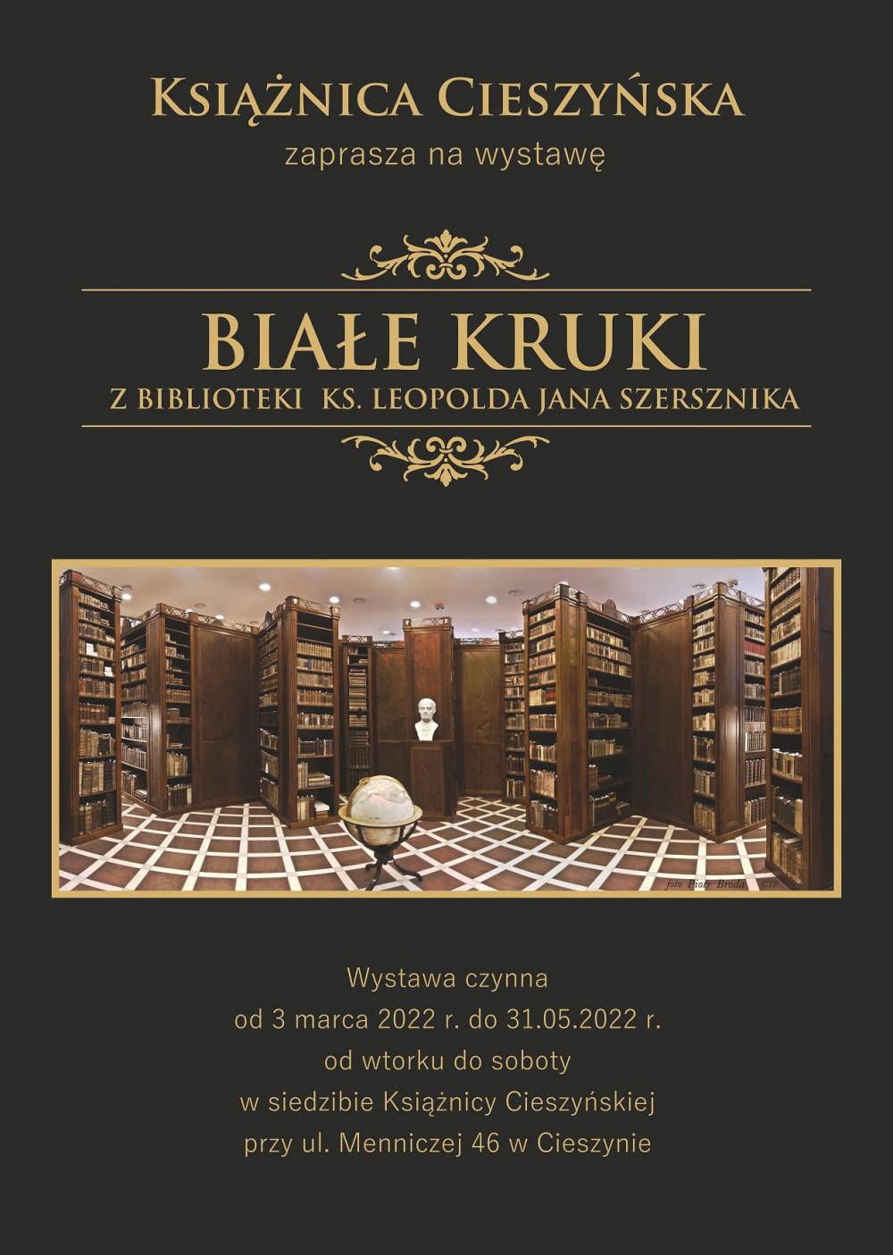 W czwartek 3 marca o godz. 16.00 odbędzie się w Książnicy Cieszyńskiej wyjątkowy wernisaż wystawy „Białe kruki z biblioteki ks. Leopolda Jana Szersznika” zorganizowanej z okazji 275 rocznicy urodzin L. J. Szersznika i 220 rocznicy oddania założonej przez niego biblioteki do użytku publicznego. Po wernisażu nastąpi złożenie kwiatów pod pomnikiem ks. Leopolda Jana Szersznika w Parku Pokoju. Msza św. w Jego intencji odprawiona zostanie tego samego dnia o godz. 18.00 w kościele pw. Św. Marii Magdaleny.