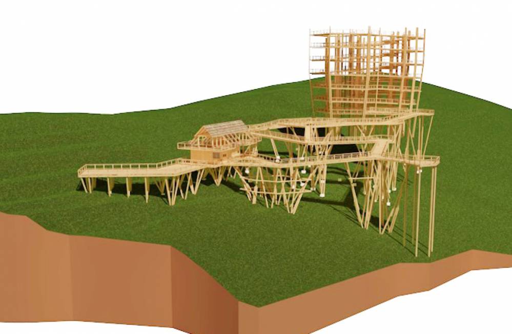 Budowla wykonana będzie z robinii akacjowej i modrzewia przy zachowaniu naturalnego koloru drewna. Zestawienie wież, ścieżek, podpór tworzy niepowtarzalny układ przestrzenny doskonale wpisujący się w otoczenie i okoliczny krajobraz.