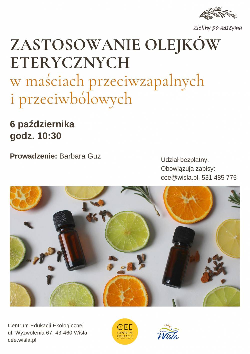 W październiku zapraszamy na kolejne spotkanie poświęcone poznawaniu olejków eterycznych. Uczestnicy dowiedzą się, jak olejki eteryczne mogą uśmierzać ból i łagodzić stany zapalne.