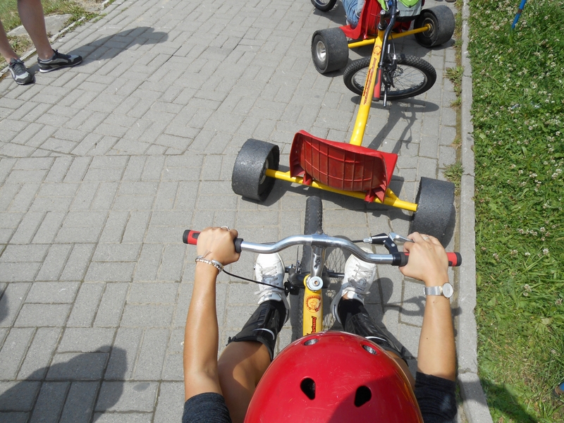Brzmi poważnie. W rzeczywistości jednak to nic innego jak hulajnogi do zadań specjalnych w tym przypadku do zjazdu z góry. Wybrać można jedną z dwóch opcji zjazdu: trasą rekreacyjną, drogą asfaltową liczącą 5,6 km lub trasą stokiem (trudniejsza) o długości 1,6 km. Na początek polecamy trasę asfaltową, można rozwinąć dobrą prędkość i poczuć wiatr we włosach. Tak, hulajnogi wyposażone są w bardzo dobre hamulce.